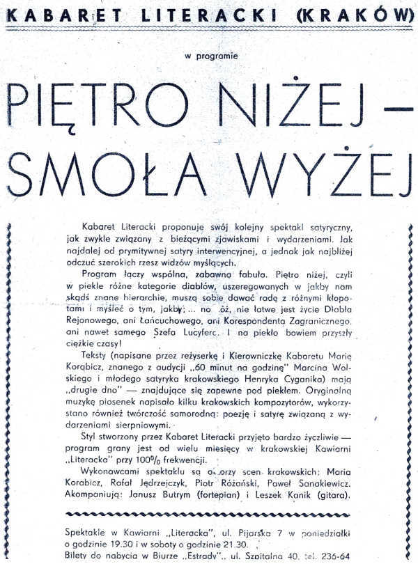 Drugi, równolegle anty-komunistyczny spektakl z udziałem muzyków grany był w Teatrze Słowackiego p.t.